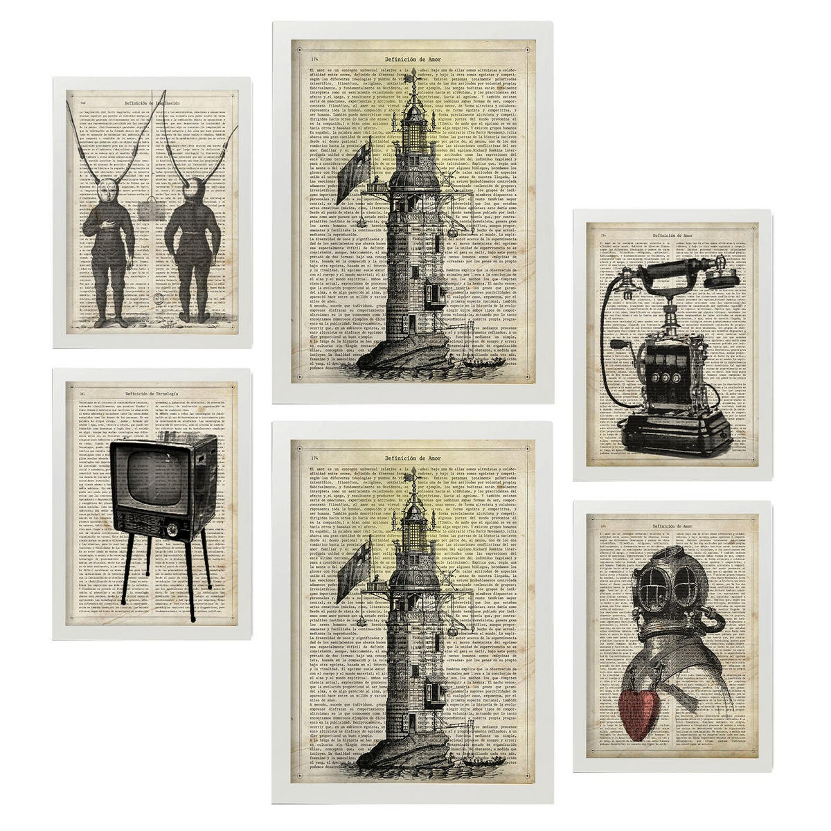 Nacnic POSTER Set Mit 6 Jahrgang Vintage Papier Plakate Mit Enzyklopädie Revolutionäre Erfindungen Aus Dem Letzten Jahrhundert A3 & A4 Weißer Rahmen