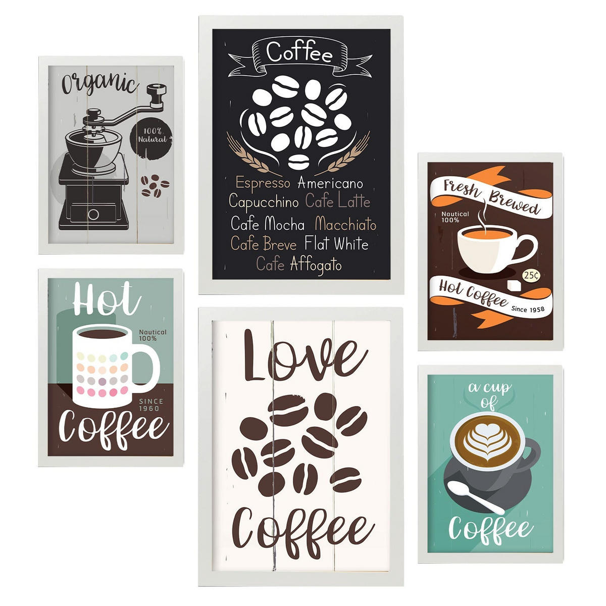 Nacnic POSTER Set Mit 6 Kaffee Vollfarbige Illustrationen Von Kaffee & Getränken Im Werbetafel Illustrationen Für & Heim A3 & A4 Weißer Rahmen