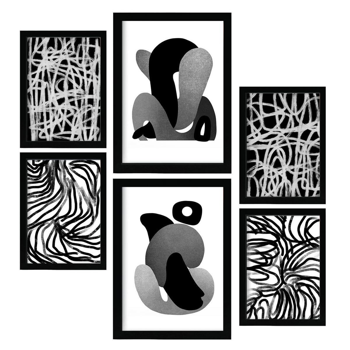 POSTER Set Mit 6 Kaput Handwerk In Liebhaber Abstrakt Ästhetische Dekorative Gemälde Für Ihr Wohnzimmer Schlafzimmer Zuhause A3 & A4 Schwarzer Rahmen - Schwarz, Papier (29/3cm) - Nacnic