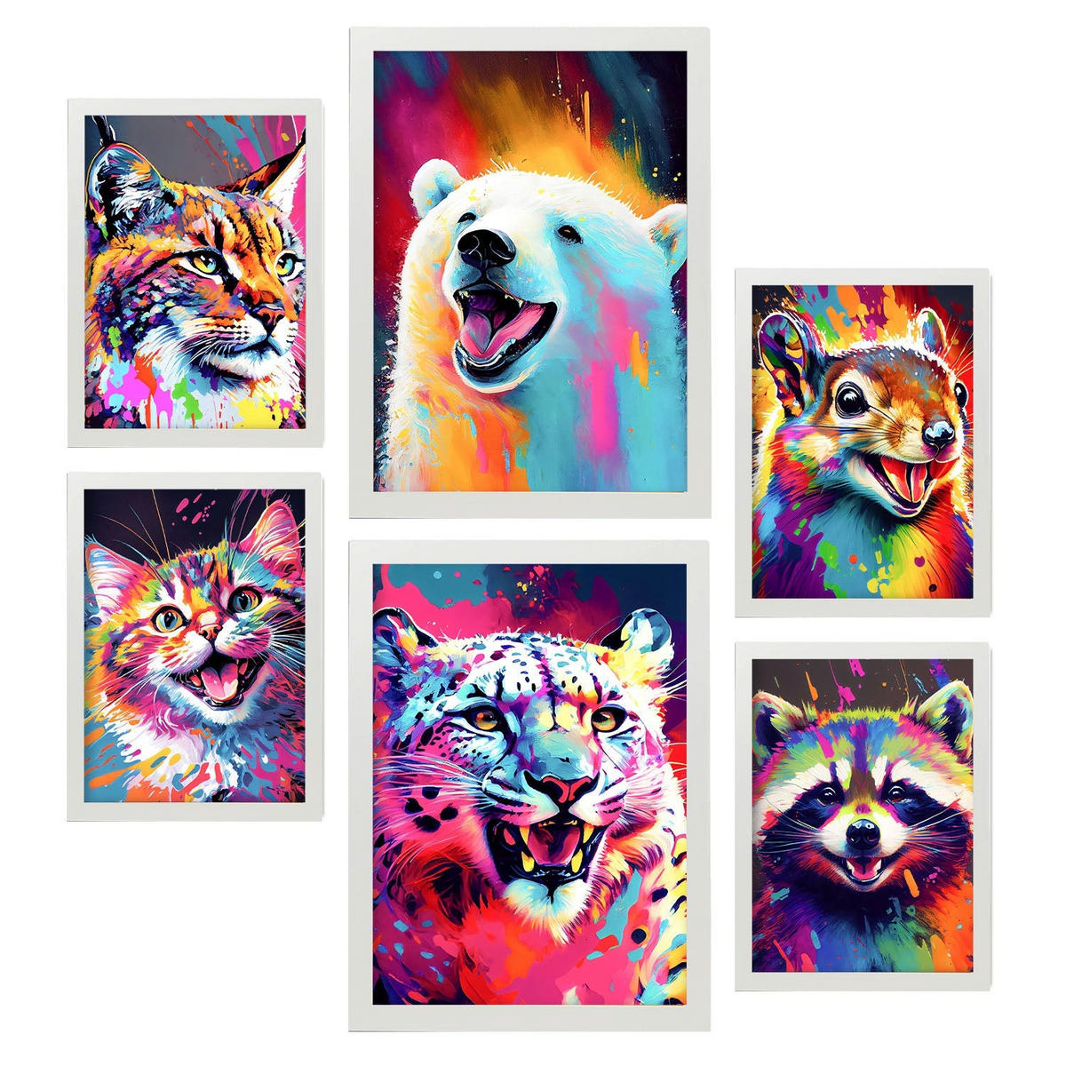 POSTER Set Mit 6 Katzen Und Bären Im Hochformat Lebhafte Aquarell Stil Illustrationen Von Lächelnde Tiere Innenarchitektur A3 & A4 Weißer Rahmen - Weiß, Papier (29/3cm) - NacnicNacnic