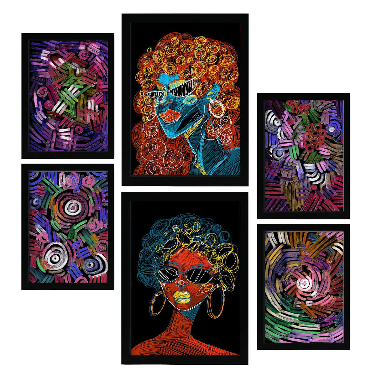 POSTER Set Mit 6 Krasse Formen 2 In Weibliche Zusammenfassung A3 & A4 Schwarzer Rahmen - Schwarz, Papier (29/3cm) - NacnicNacnic