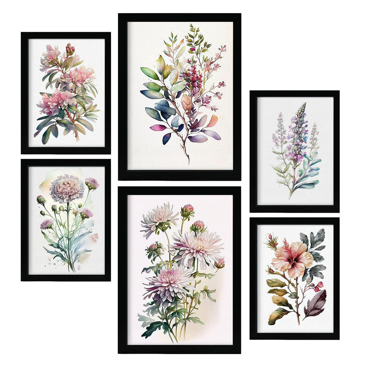 Nacnic POSTER Set Mit 6 Landblumen Vollfarbige Natur Und Botanikdrucke Mit Blumenmotiven Auf Reinweißen Hintergründen A3 & A4 Schwarzer Rahmen
