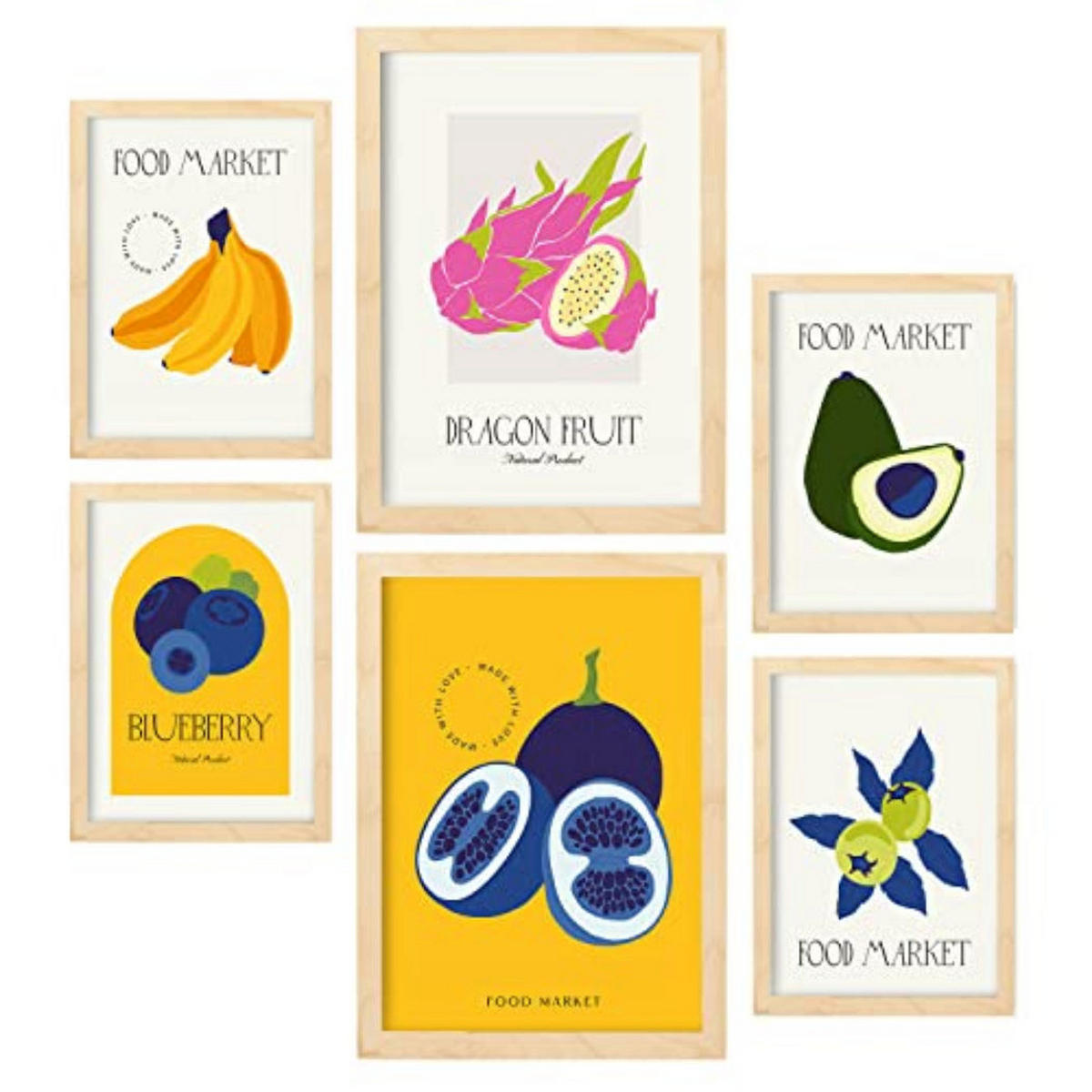 Nacnic POSTER Set Mit 6 Lebensmittel Und Ernährungs Beeren Natur Und Botanikdrucke Für Innenarchitektur A3 & A4 Rahmen Aus Hellem Holz