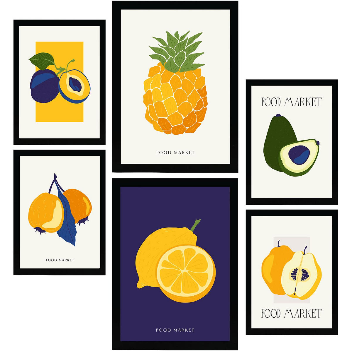 Nacnic POSTER Set Mit 6 Lebensmittel Und Ernährungs Tropische Früchte Natur Und Botanikdrucke Für Innenarchitektur A3 & A4 Schwarzer Rahmen
