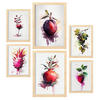 POSTER Set Mit 6 Lila Früchte Plakate Von Obst Gemüse & Gesunden Lebensmitteln Im Aquarell Kunst Auf Reinweißen Hintergründen A3 & A4 Schwarzer Rahmen - Schwarz, Papier (29/3cm) - Nacnic