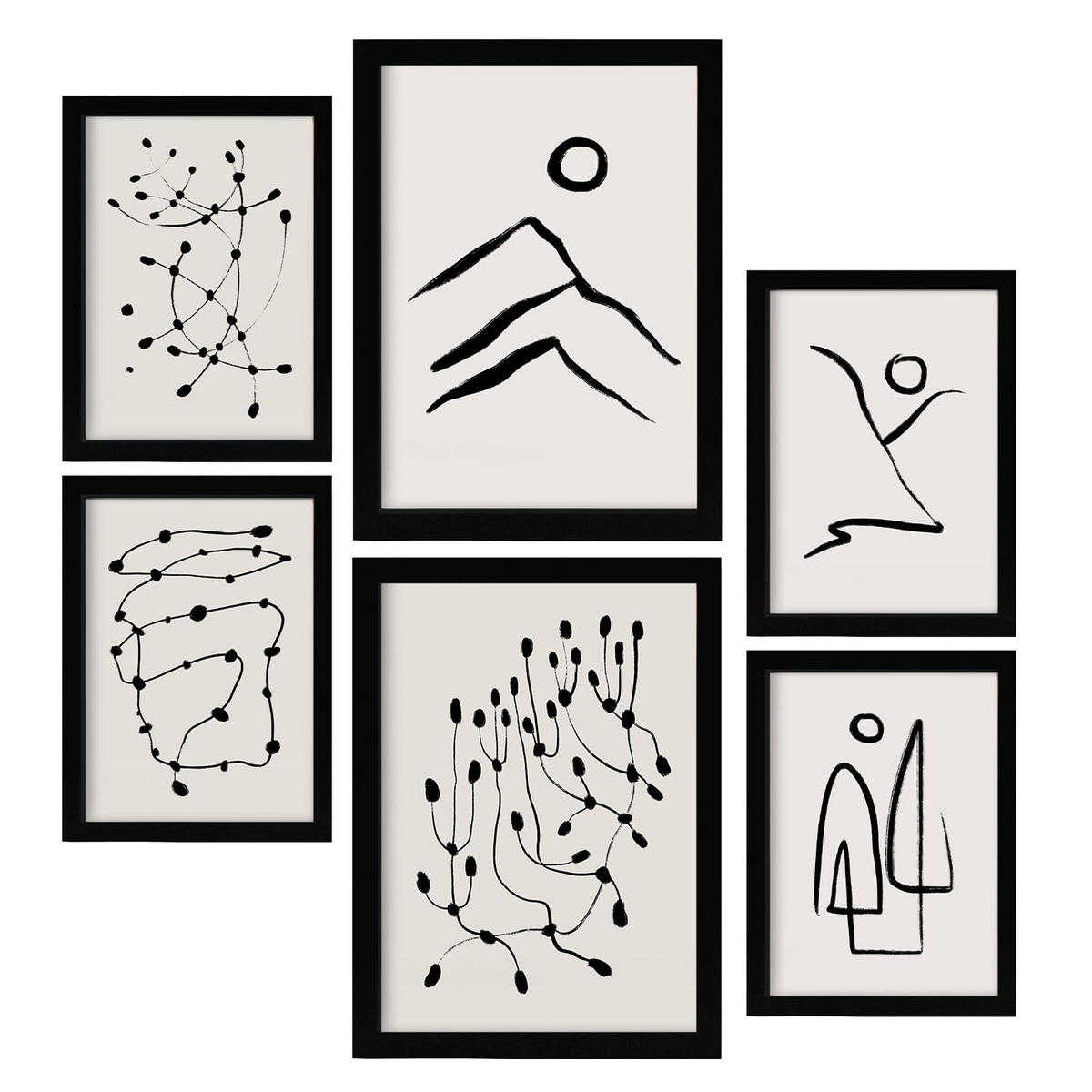 Nacnic POSTER Set Mit 6 Linien Weicher In Liebhaber Abstrakt A3 & A4 Schwarzer Rahmen