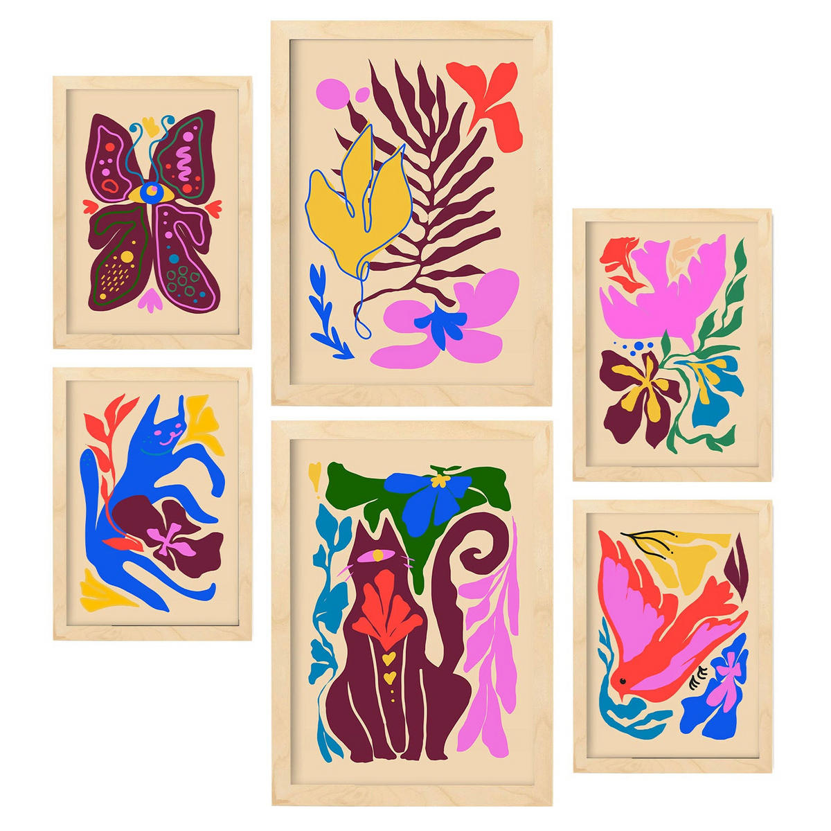 POSTER Set Mit 6 Malerisch 1 In Tiere Abstracts Ästhetische Dekorative Gemälde Für Ihr Wohnzimmer Schlafzimmer Zuhause A3 & A4 Rahmen Aus Hellem Holz - Beige, Papier (29/3cm) - NacnicNacnic