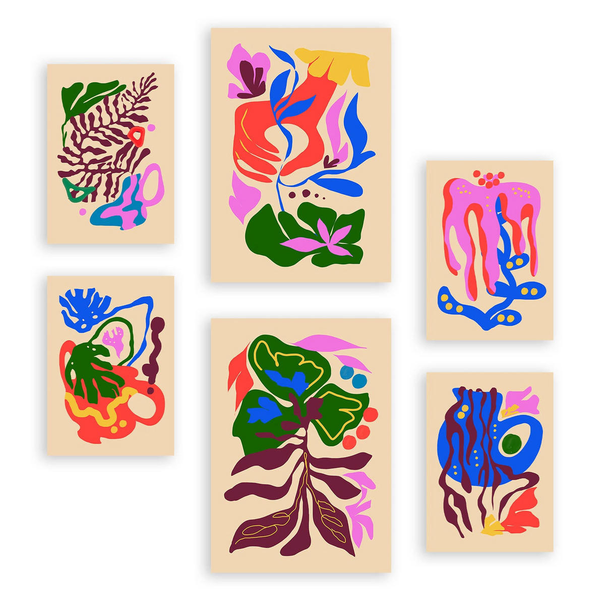 POSTER Set Mit 6 Malerisch 2 In Blume Zusammenfassung Ästhetische Dekorative Gemälde Für Ihr Wohnzimmer, Schlafzimmer, Zuhause A3 & A4 Rahmenlos - Klar, Papier (29/3cm) - NacnicNacnic