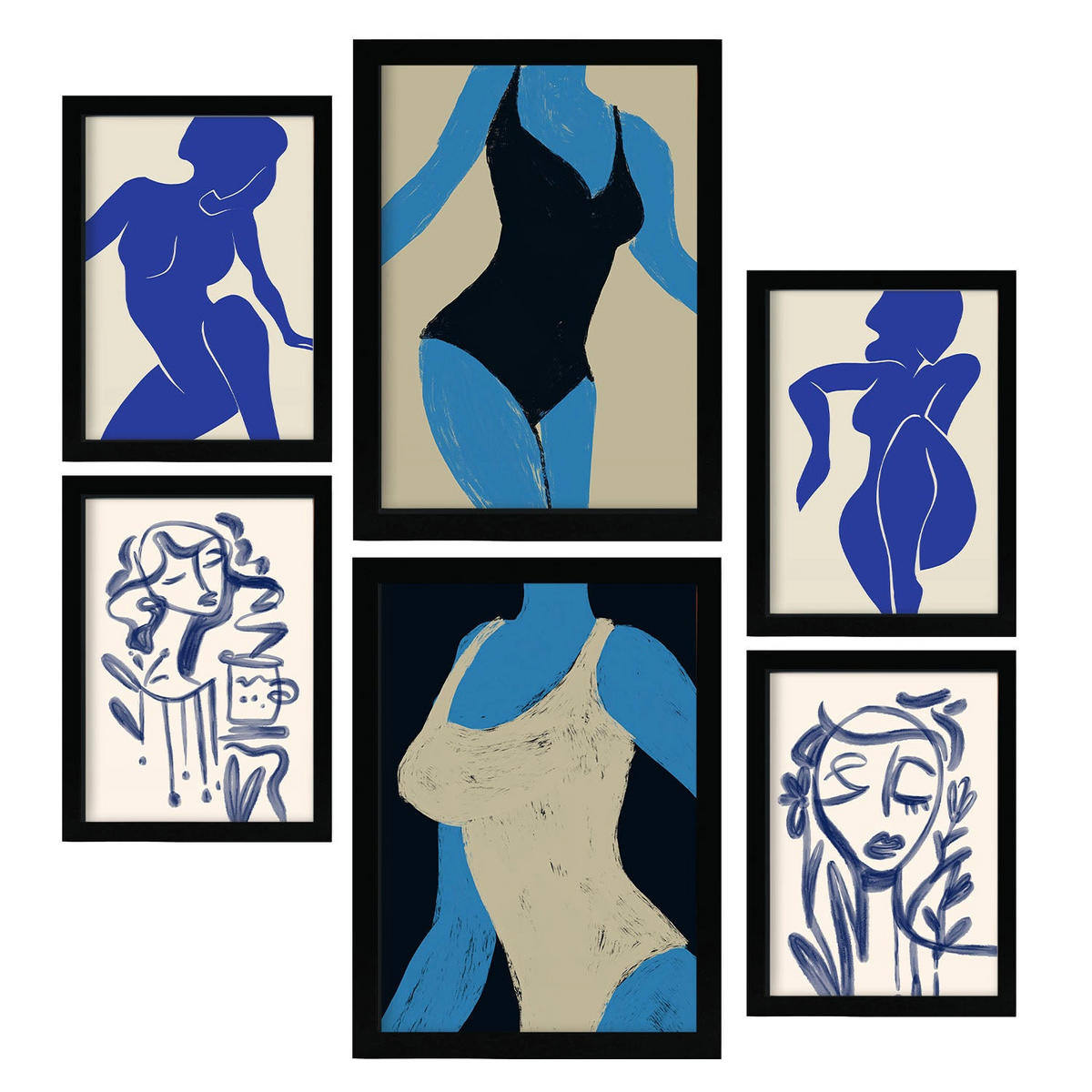 POSTER Set Mit 6 Mettle Körper 1 In Weibliche Zusammenfassung Ästhetische Dekorative Gemälde Für Ihr Wohnzimmer Zuhause A3 & A4 Schwarzer Rahmen - Schwarz, Papier (29/3cm) - Nacnic