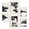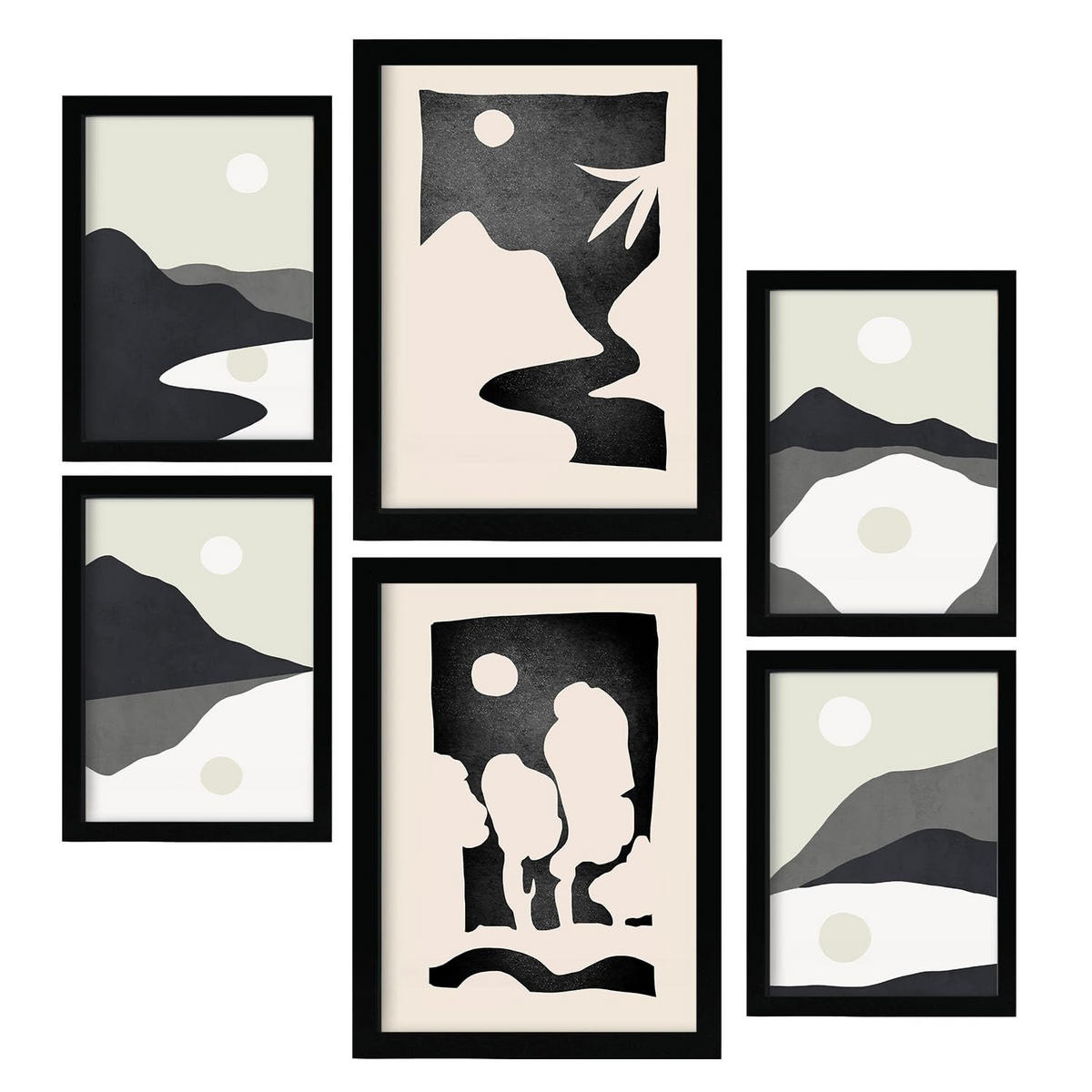 POSTER Set Mit 6 Mitternachtsmond In Kulissen Abstracts Ästhetische Dekorative Gemälde Für Ihr Wohnzimmer Zuhause A3 & A4 Schwarzer Rahmen - Schwarz, Papier (29/3cm) - Nacnic