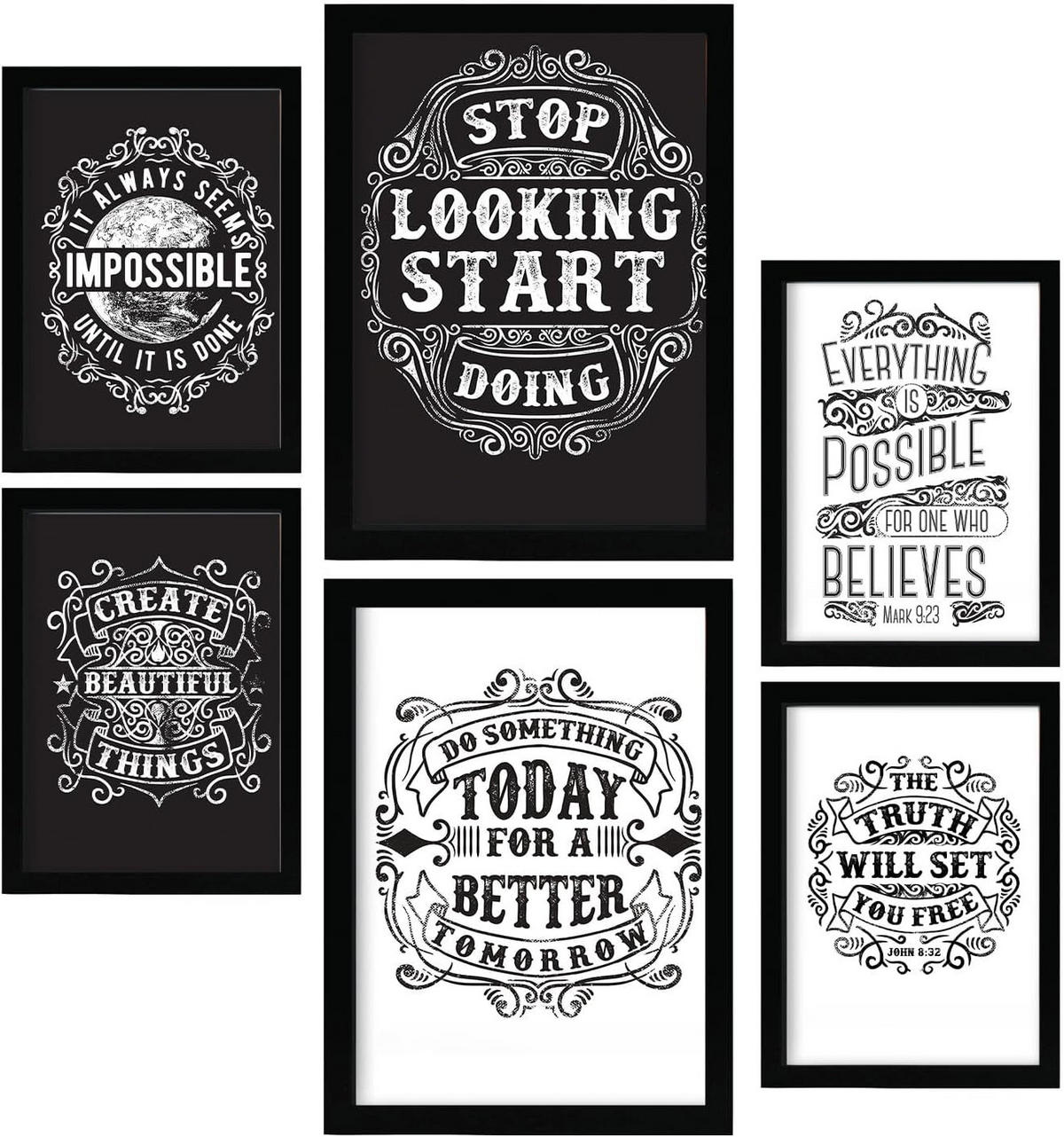 Nacnic POSTER Set Mit 6 Motivierend In Rustikale Zitate A3 & A4 Rahmen Aus Hellem Holz