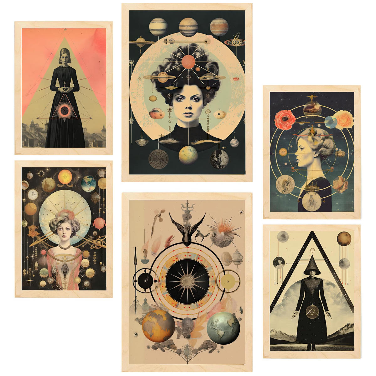 Nacnic POSTER Set Mit 6 Mystischen & Esoterischen In Beige & Schwarz Zur A3 & A4 Rahmen Aus Hellem Holz