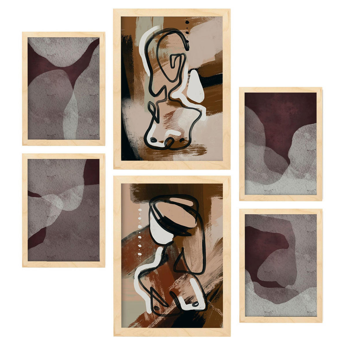POSTER Set Mit 6 Nachkommenskunst In Weibliche Zusammenfassung Ästhetische Dekorative Gemälde Für Ihr Zuhause A3 & A4 Rahmen Aus Hellem Holz - Beige, Papier (29/3cm) - NacnicNacnic