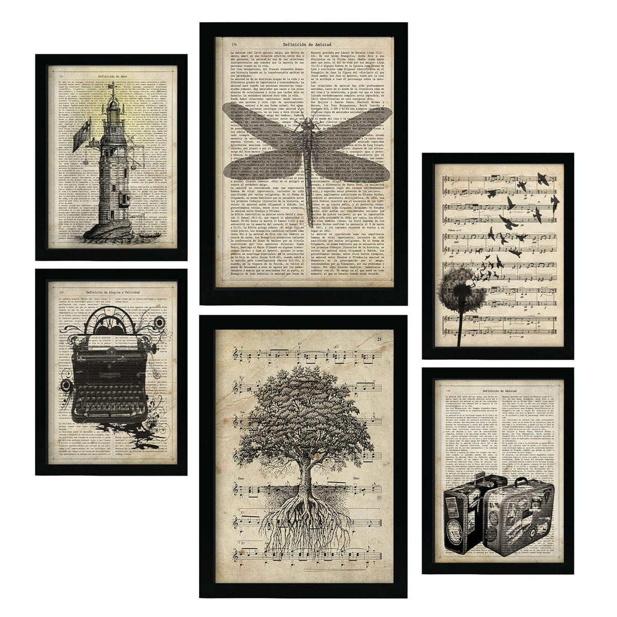 POSTER Set Mit 6 Natur und Reiseenzyklopädie Thema im Retro Vintage Stil A3 & A4 Rahmenlos - Klar, Papier (29/3cm) - NacnicNacnic