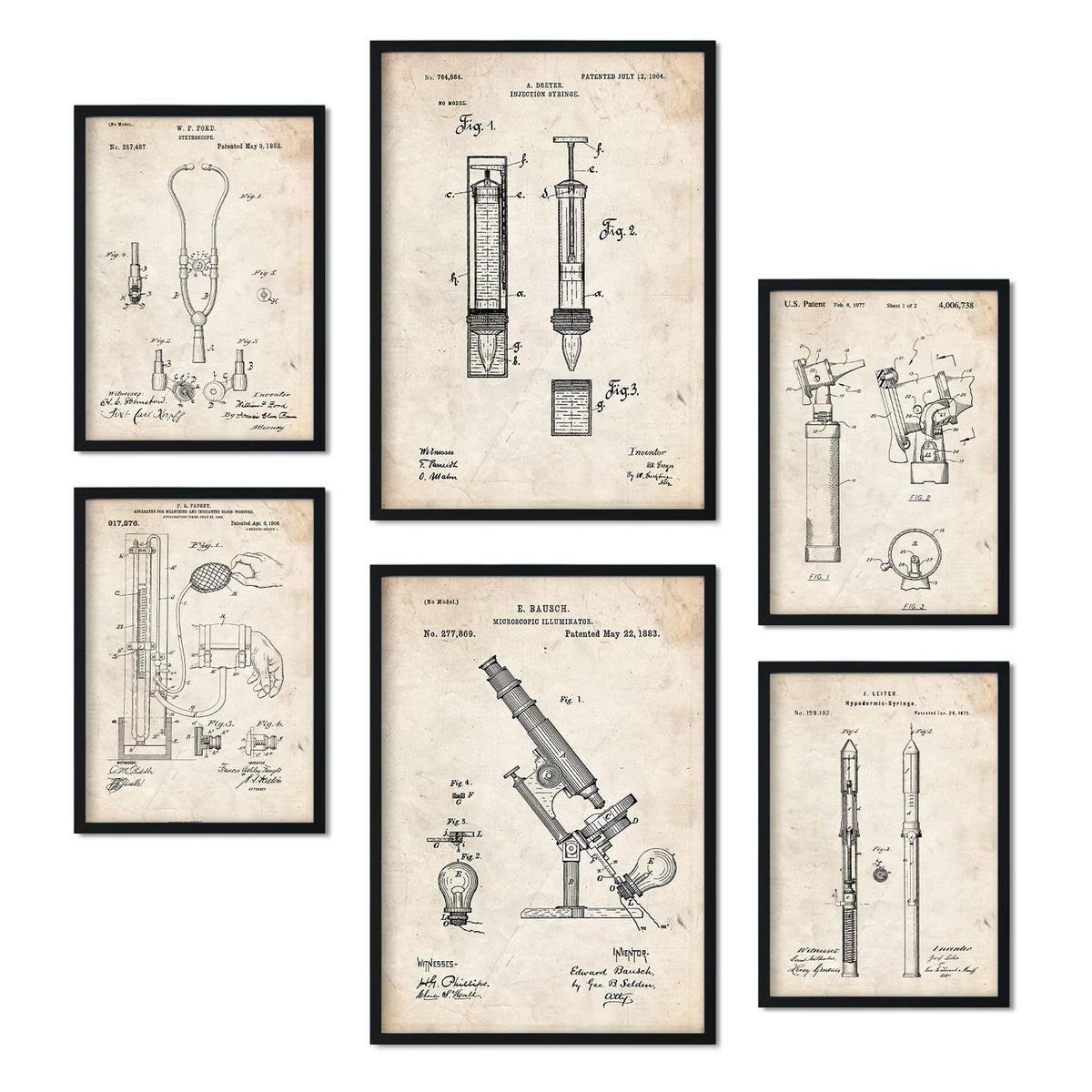 Nacnic POSTER Set Mit 6 Plakaten Mit Medizin Patenten Im Vintage Stil A3 & A4 Rahmenlos
