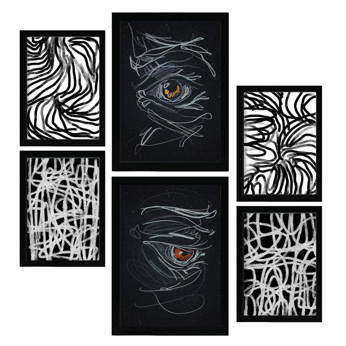 Nacnic POSTER Set Mit 6 Rasende Striche In Liebhaber Abstrakt A3 & A4 Schwarzer Rahmen