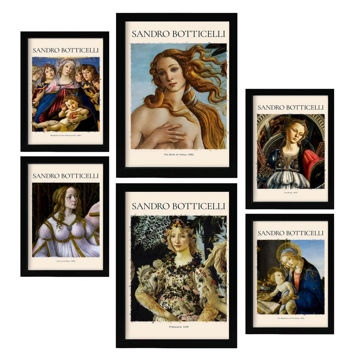 Nacnic POSTER Set Mit 6 Sandro Boticelli Sammlung A3 & A4 Rahmenlos