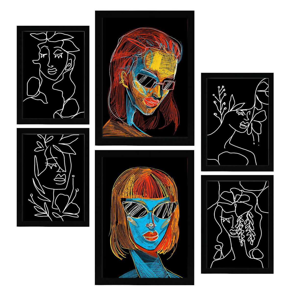 POSTER Set Mit 6 Schönheitstöne 1 In Weibliche Zusammenfassung Ästhetische Dekorative Gemälde Für Ihr Wohnzimmer Zuhause A3 & A4 Schwarzer Rahmen - Schwarz, Papier (29/3cm) - Nacnic