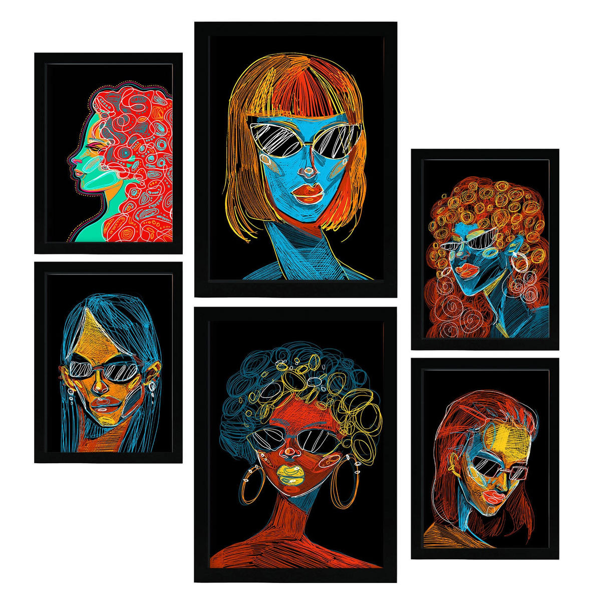 POSTER Set Mit 6 Schönheitstöne 3 In Weibliche Zusammenfassung Ästhetische Dekorative Gemälde Für Ihr Wohnzimmer Zuhause A3 & A4 Schwarzer Rahmen - Schwarz, Papier (29/3cm) - NacnicNacnic