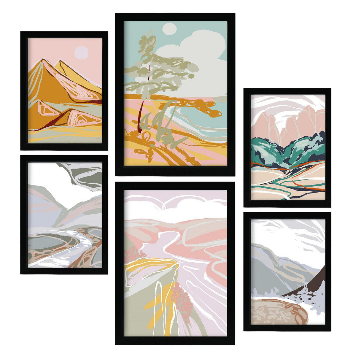 POSTER Set Mit 6 Seashores Frames 2 In Kulissen Abstracts Ästhetische Dekorative Gemälde Für Ihr Wohnzimmer Zuhause A3 & A4 Schwarzer Rahmen - Schwarz, Papier (29/3cm) - Nacnic