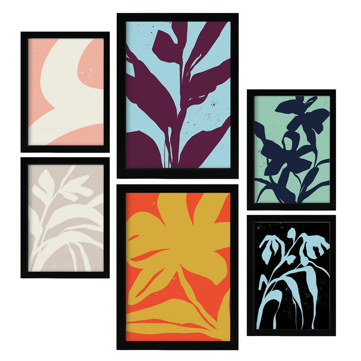 POSTER Set Mit 6 Streifenblätter In Blume Zusammenfassung Ästhetische Dekorative Gemälde Für Ihr Wohnzimmer Zuhause A3 & A4 Schwarzer Rahmen - Schwarz, Papier (29/3cm) - NacnicNacnic