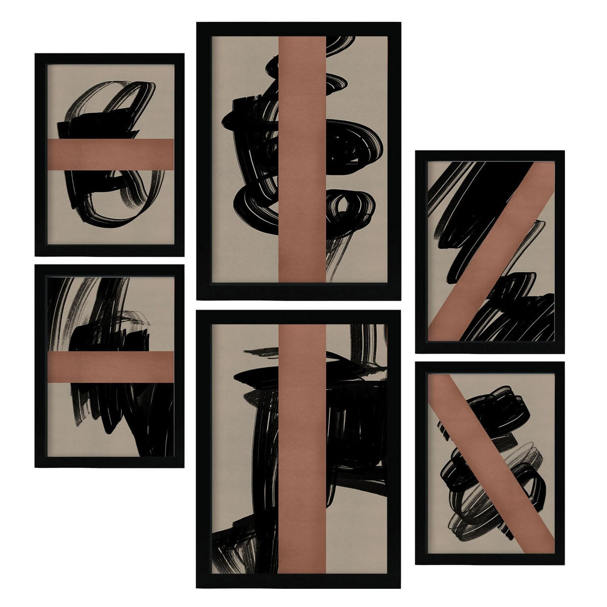 POSTER Set Mit 6 Utopisches Handwerk In Form Abstracts Ästhetische Dekorative Gemälde Für Ihr Wohnzimmer Schlafzimmer Zuhause A3 & A4 Schwarzer Rahmen - Schwarz, Papier (29/3cm) - Nacnic