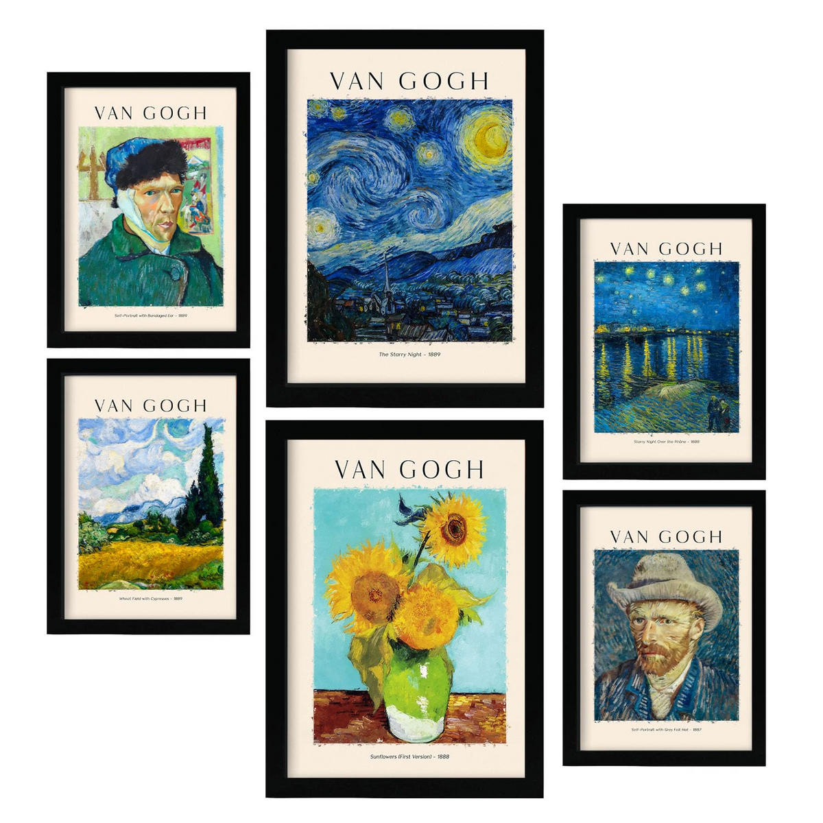 Nacnic POSTER Set Mit 6 Van Gogh Malergalerie A3 & A4 Schwarzer Rahmen