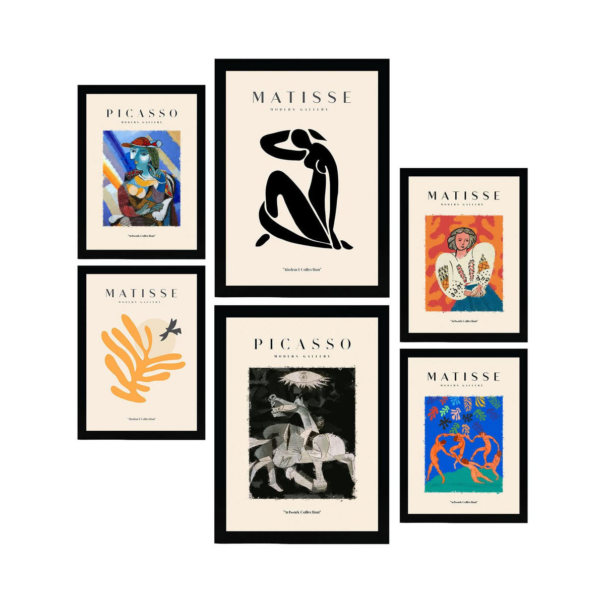 POSTER Set Mit 6 Von Picasso Und Matisse Abstrakte Gemälde Drucke Des Fauvismus Und Surrealismus Für Innenarchitektur A3 & A4 Schwarzer Rahmen - Schwarz, Papier (29/3cm) - Nacnic