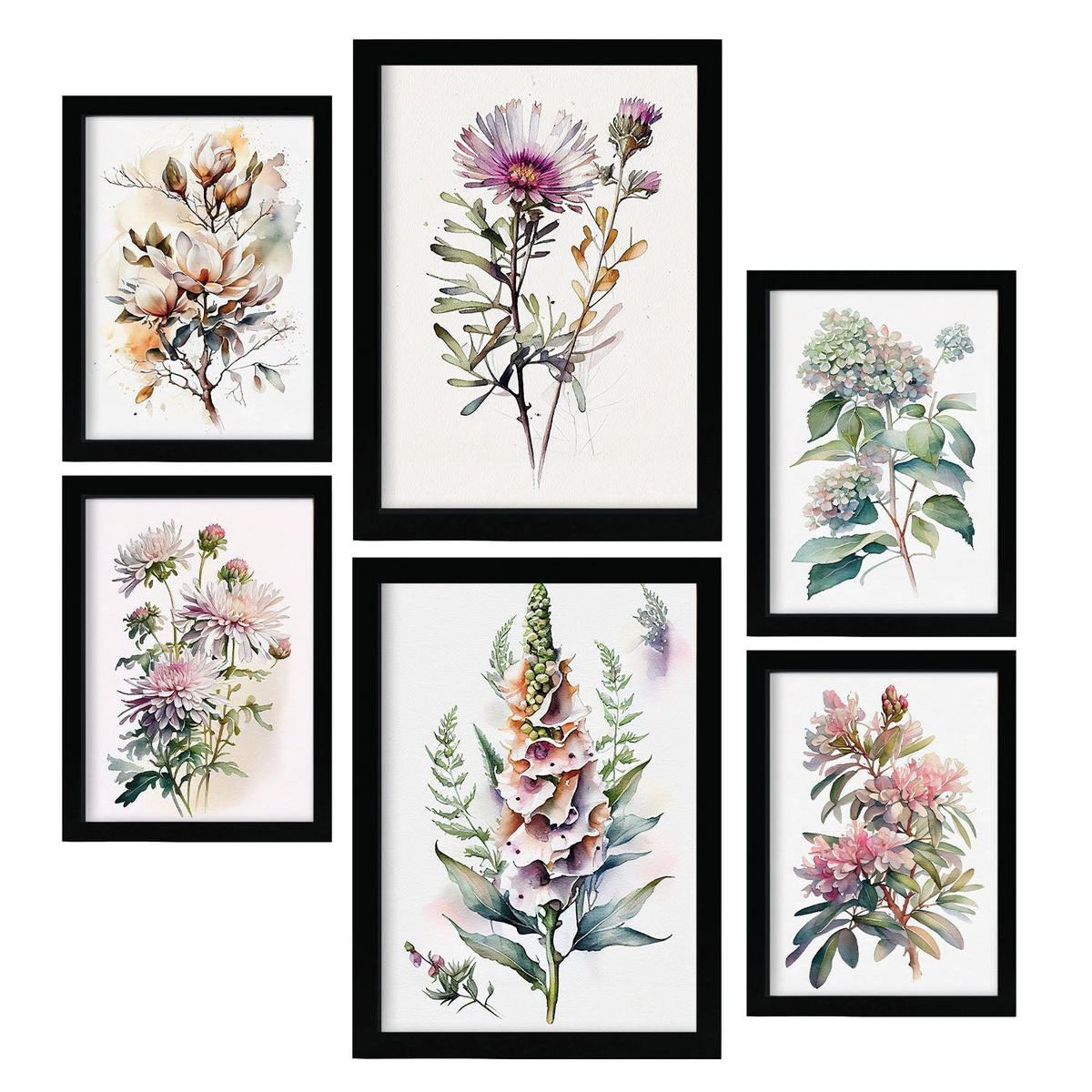 Nacnic POSTER Set Mit 6 Waldblumen Vollfarbige Natur Und Botanikdrucke Mit Blumenmotiven Auf Reinweißen Hintergründen A3 & A4 Schwarzer Rahmen