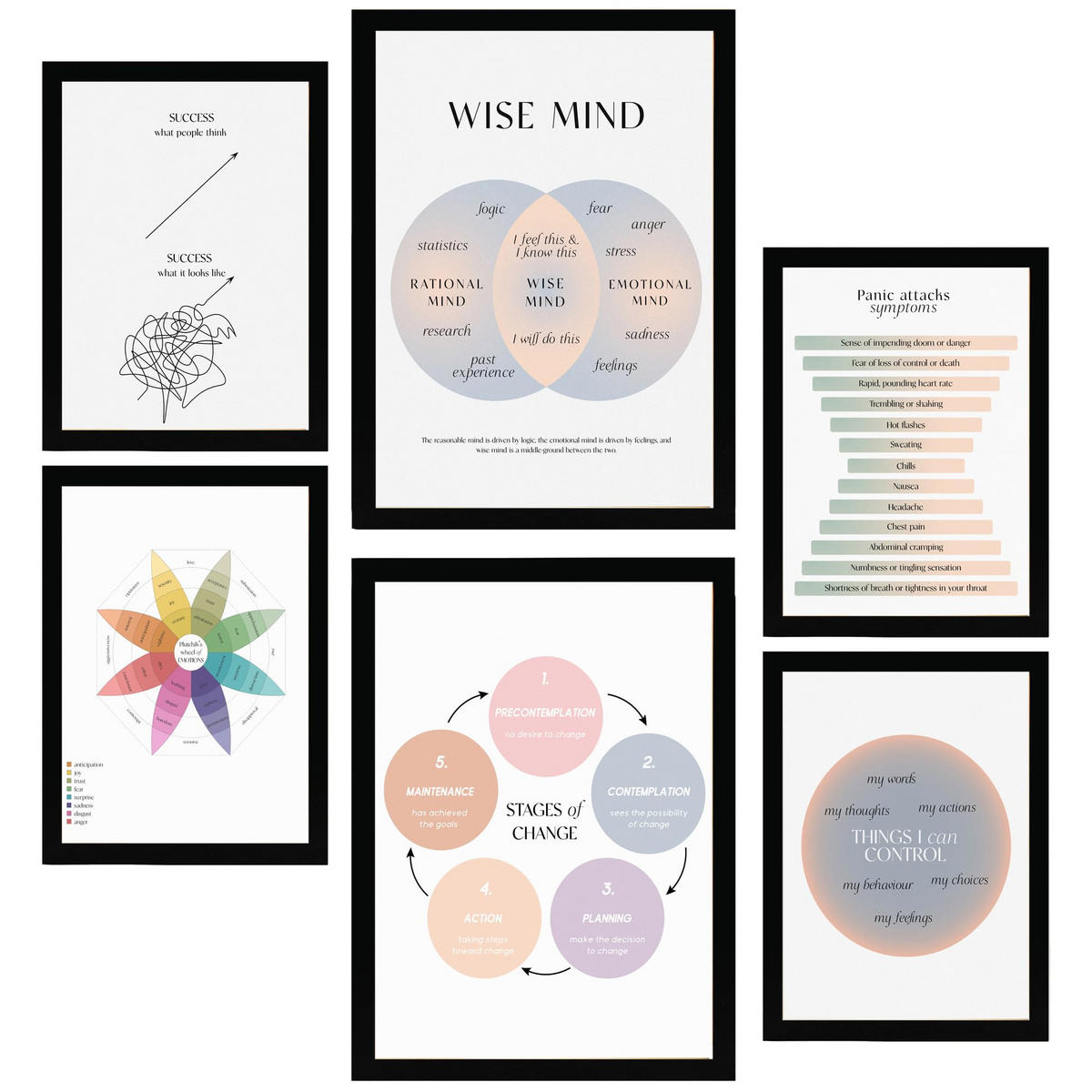 Nacnic POSTER Set Mit 6 Wellness 2 A3 & A4 Schwarzer Rahmen