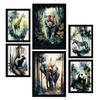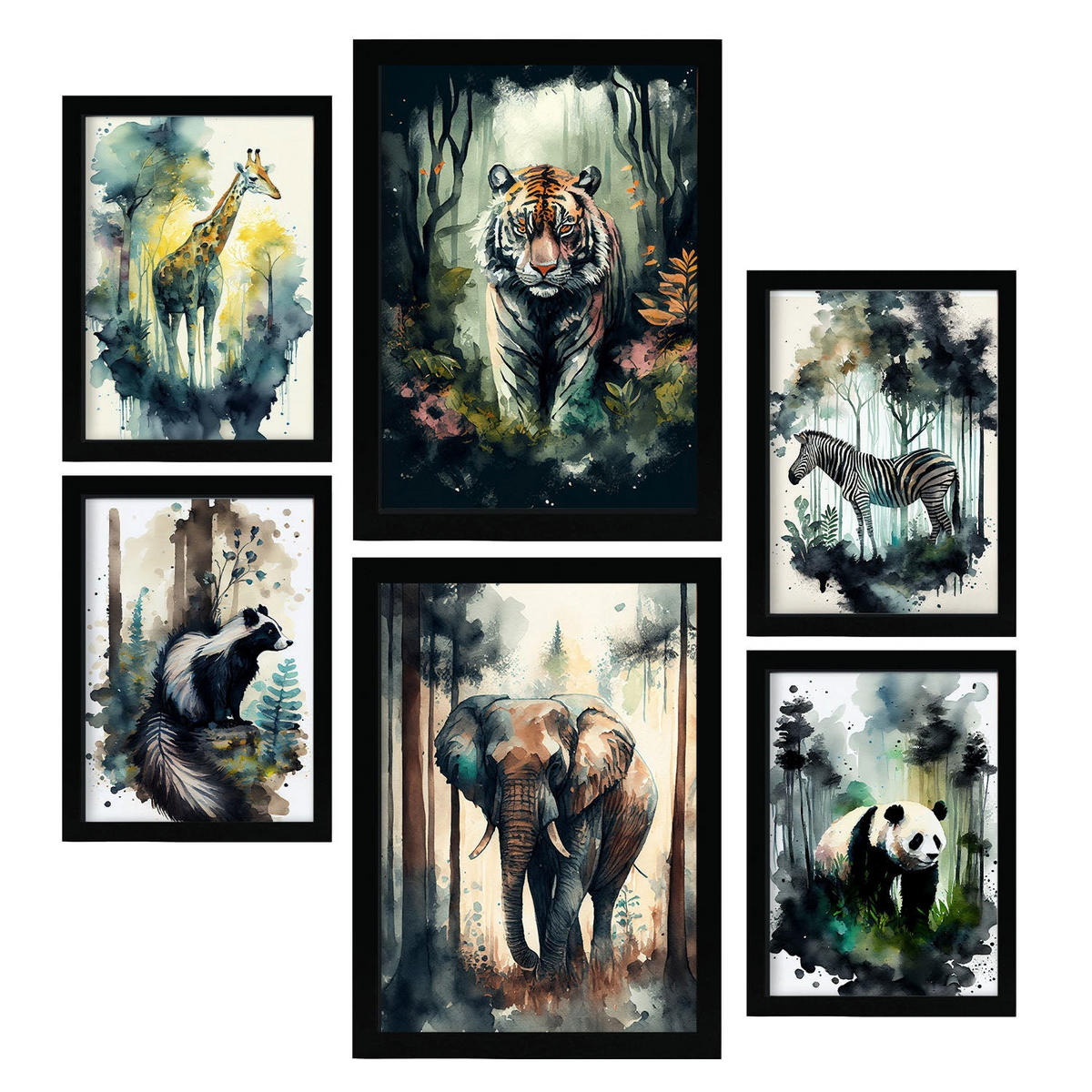 POSTER Set Mit 6 Wilde Welt Illustrationen Von Tieren In Naturlandschaften, Realistischer Aquarellstil Innenarchitektur A3 & A4 Schwarzer Rahmen - Schwarz, Papier (29/3cm) - NacnicNacnic