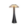 Material: Die Tischlampe besteht aus galvanischem PMMA (Rauchgrau) und 16-LED-Lichtquelle; eingebauter 1200 mAh Lithium-Ionen-Akku. Mit einem USB-Kabel über das Netzteil aufladbar oder direkt an das Netz angeschlossen, arbeiten voll aufgeladene Leuchten bis zu sechs Stunden mit minimaler Helligkeit.