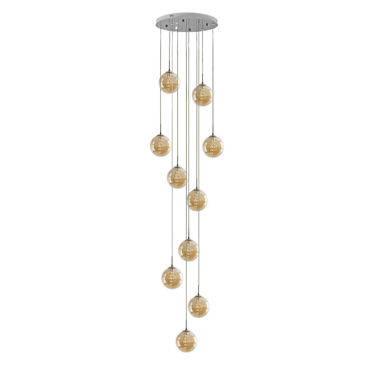 Produktabmessungen - Durchmesser ø15cm (jede Kugel in Farbe Bernstein), das Maß der Deckenlpatte: ø41*3.5cm, Spannung:230V, Kabellänge: 2M