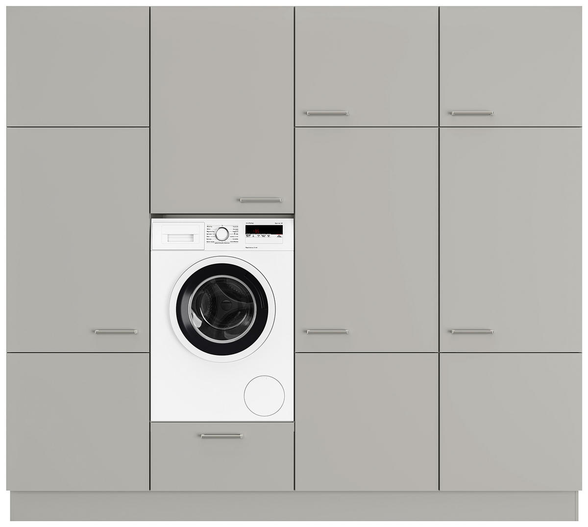 - Bestehend aus: Hochschrank für Bügelbrett und Wäscheständer, Hochschrank für Waschmaschine und Trockner, Hochschrank für Wäschekörbe