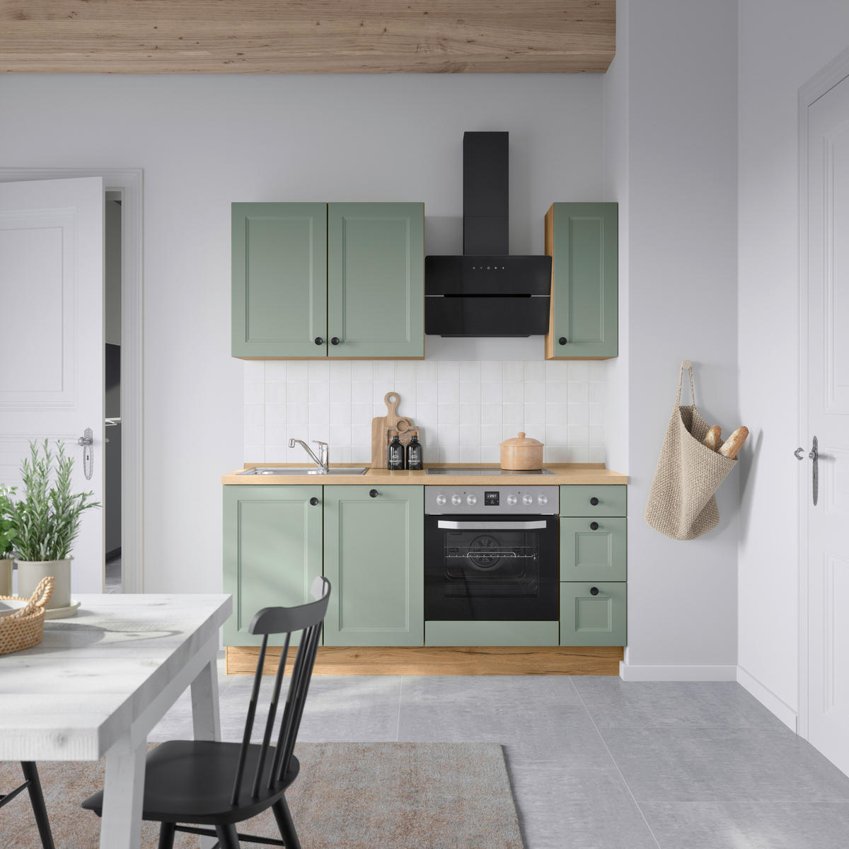 Nobilia KÜCHENBLOCK 180 cm in Eichefarben, Schilfgrün
