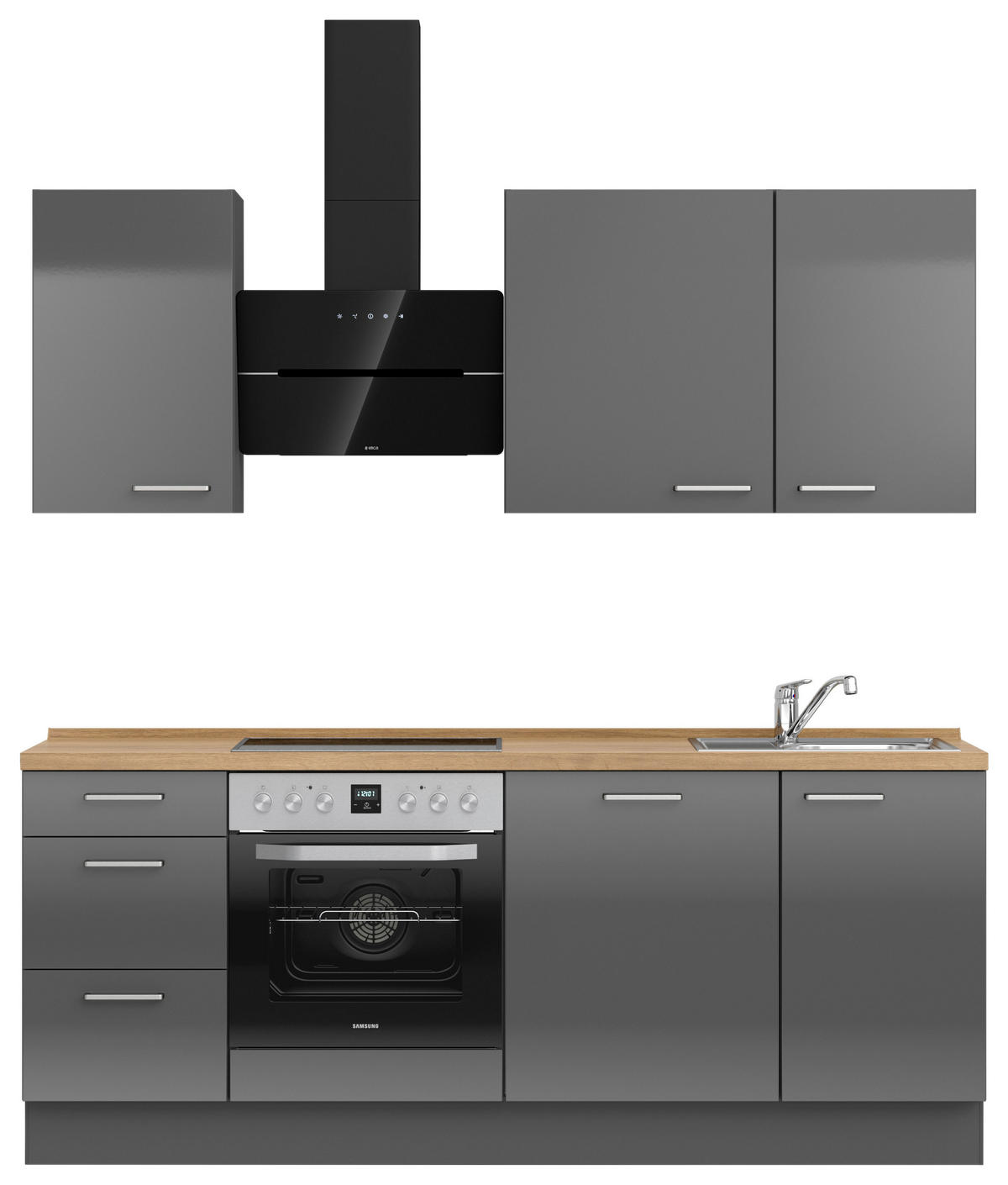 Nobilia KÜCHENBLOCK 210 cm in Eichefarben, Schieferfarben