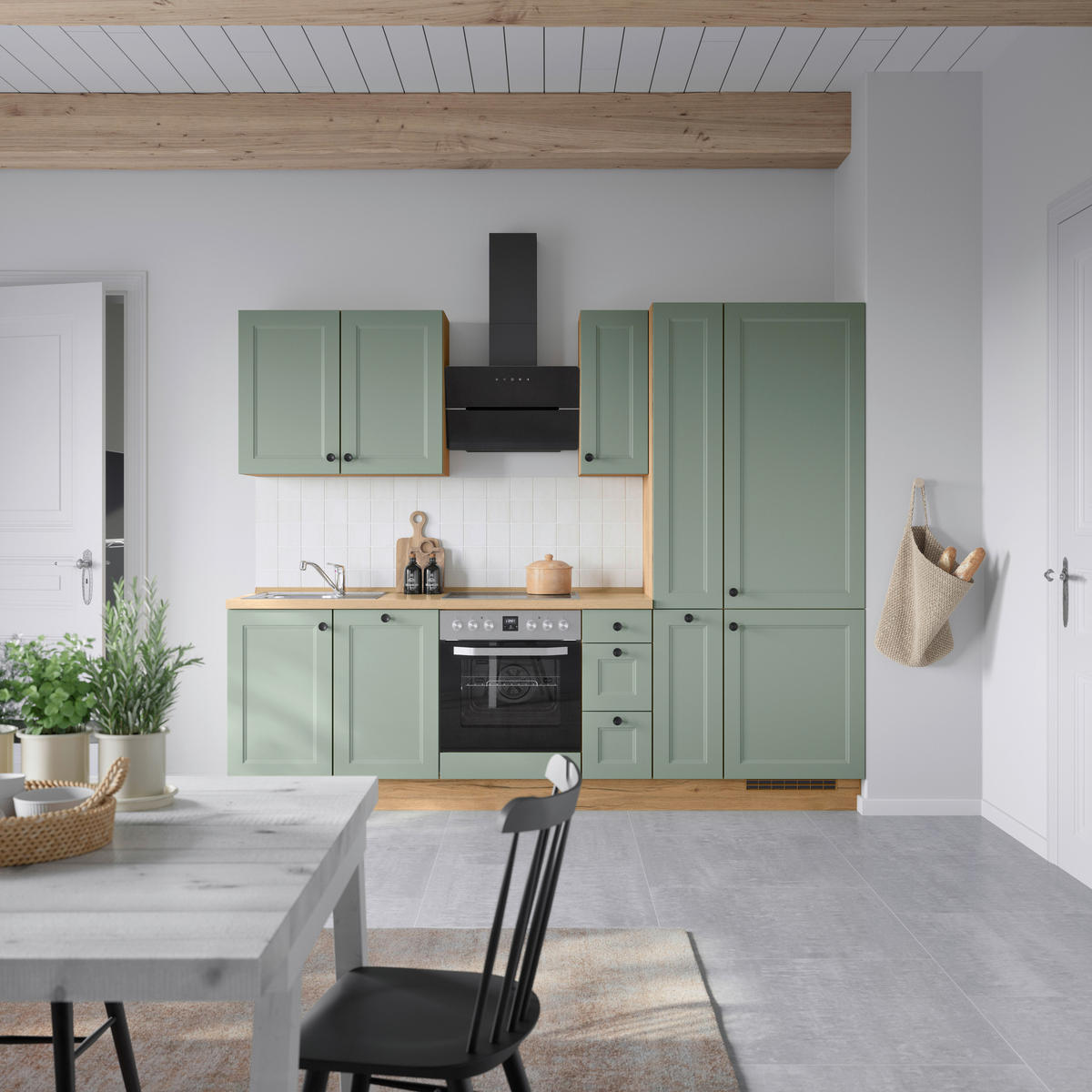 Nobilia KÜCHENBLOCK 270 cm in Eichefarben, Schilfgrün
