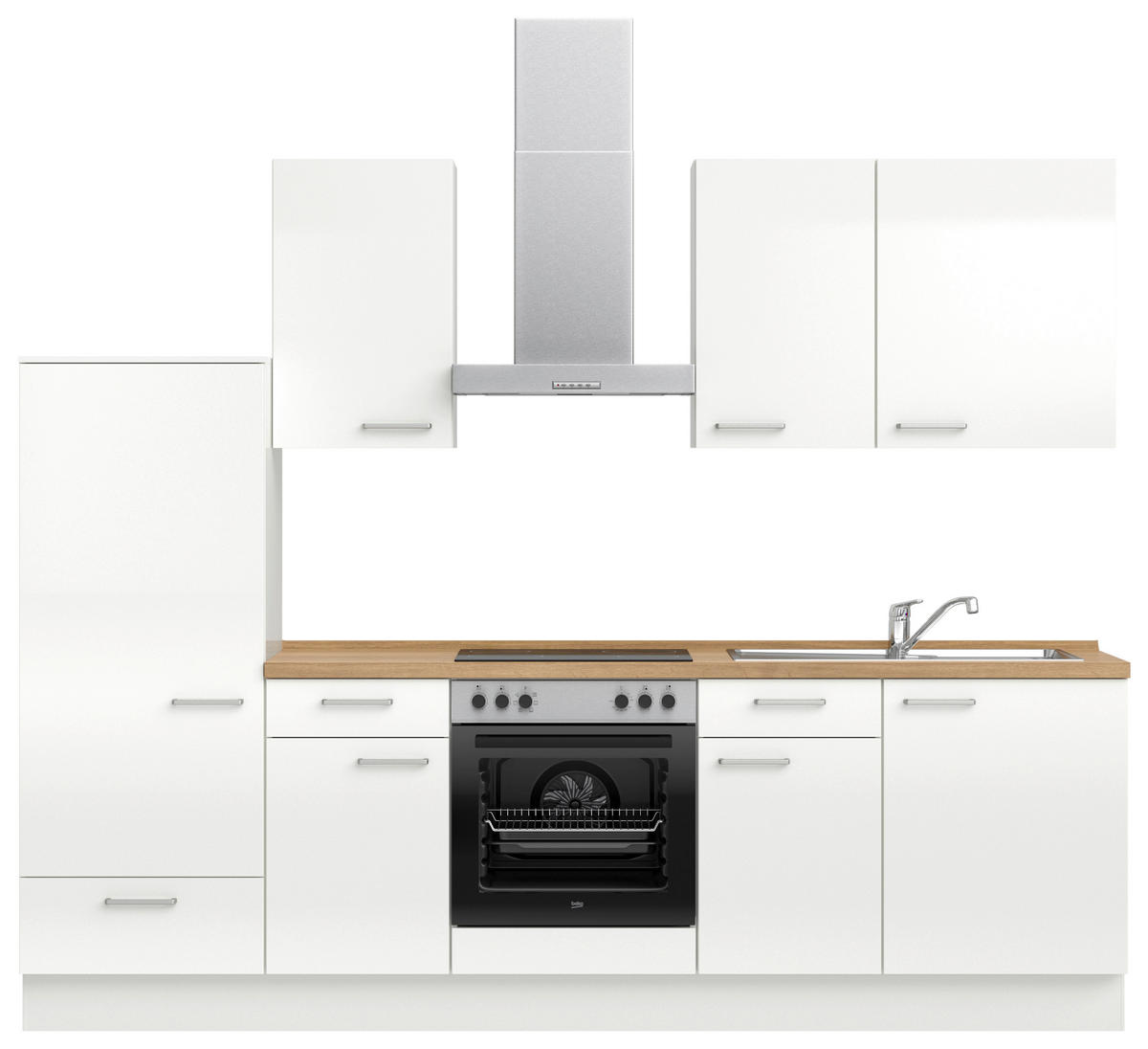 Nobilia KÜCHENBLOCK 270 cm in Eichefarben, Weiß Hochglanz