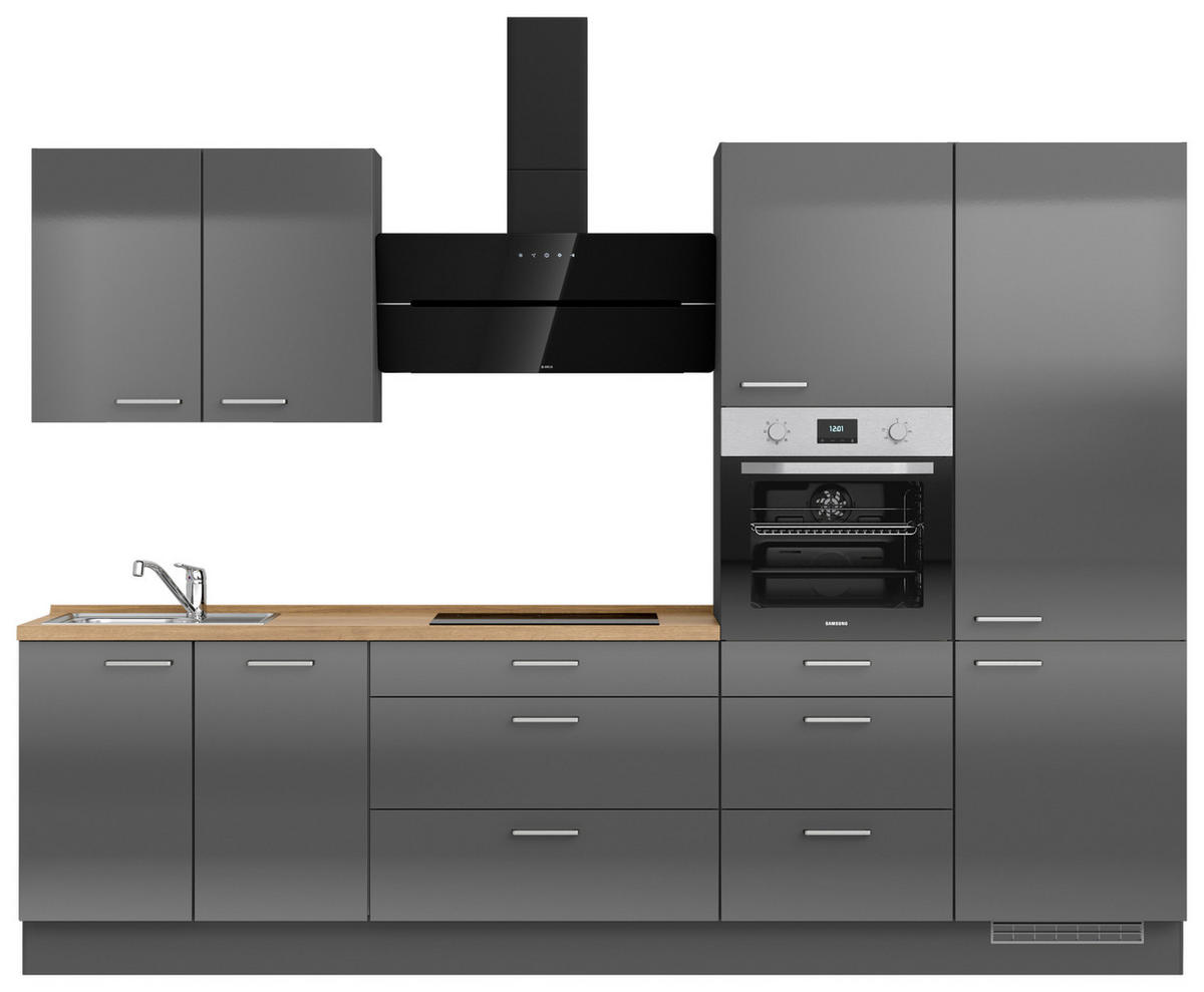 Nobilia KÜCHENBLOCK 300 cm in Eichefarben, Schieferfarben