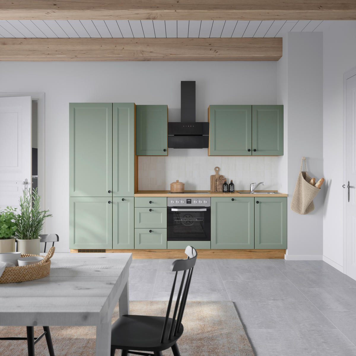 Nobilia KÜCHENBLOCK 300 cm in Eichefarben, Schilfgrün