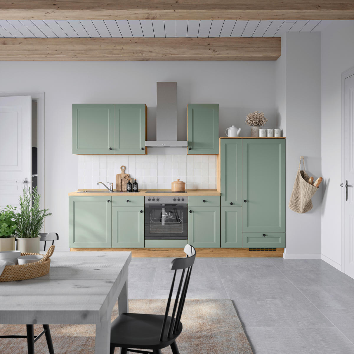 Nobilia KÜCHENBLOCK 300 cm in Eichefarben, Schilfgrün