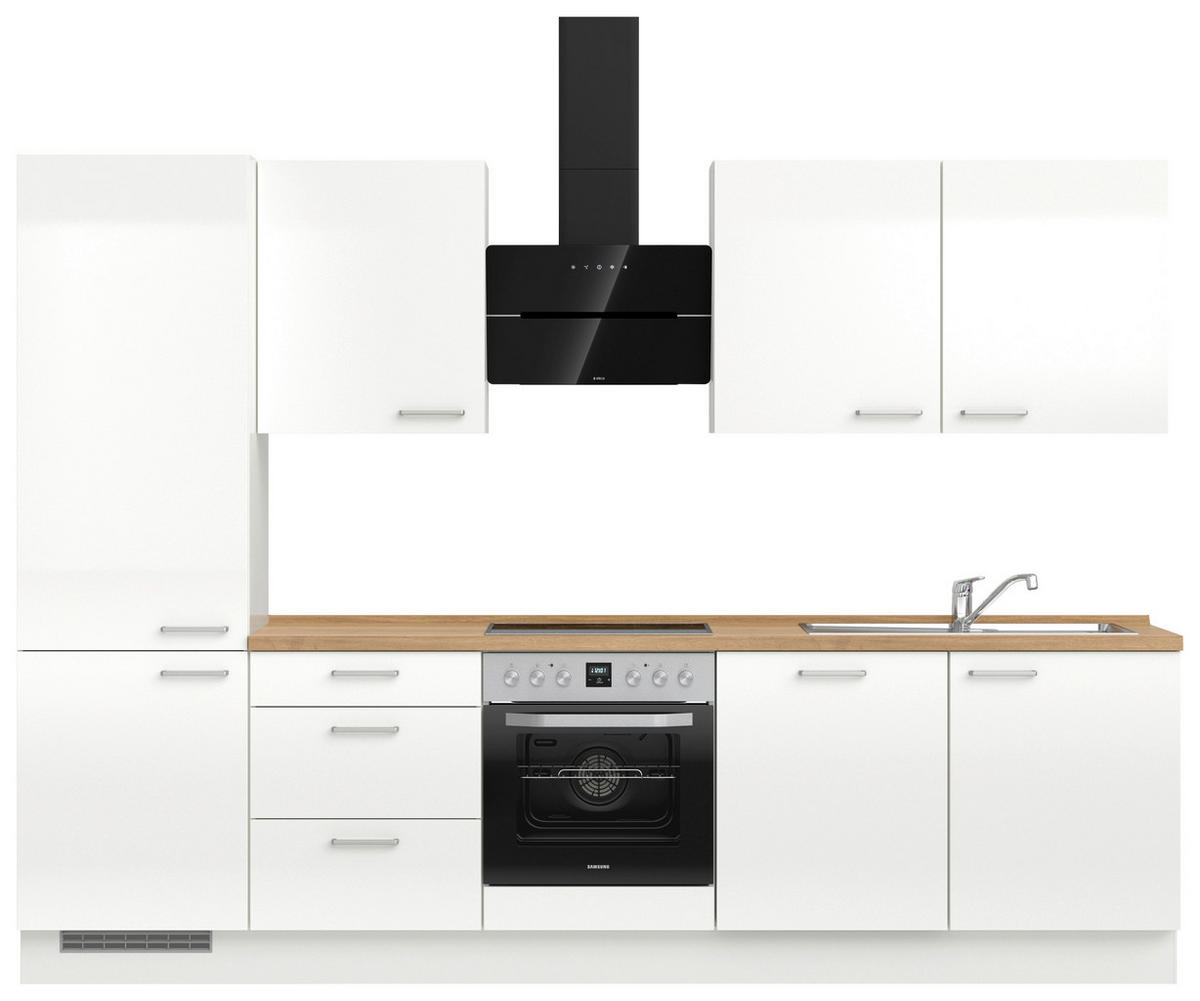 Nobilia KÜCHENBLOCK 300 cm in Eichefarben, Weiß Hochglanz
