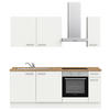 - Inkludierte Elektrogeräte: Dunstabzugshaube, Einbauherd, Kühlschrank mit Gefrierfach, Glaskeramikkochfeld