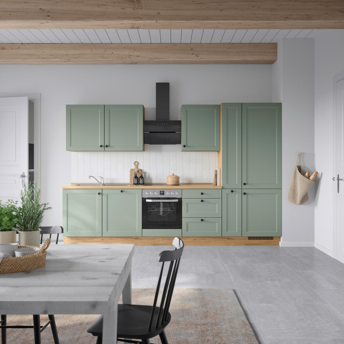 Nobilia KÜCHENBLOCK 330 cm in Eichefarben, Schilfgrün