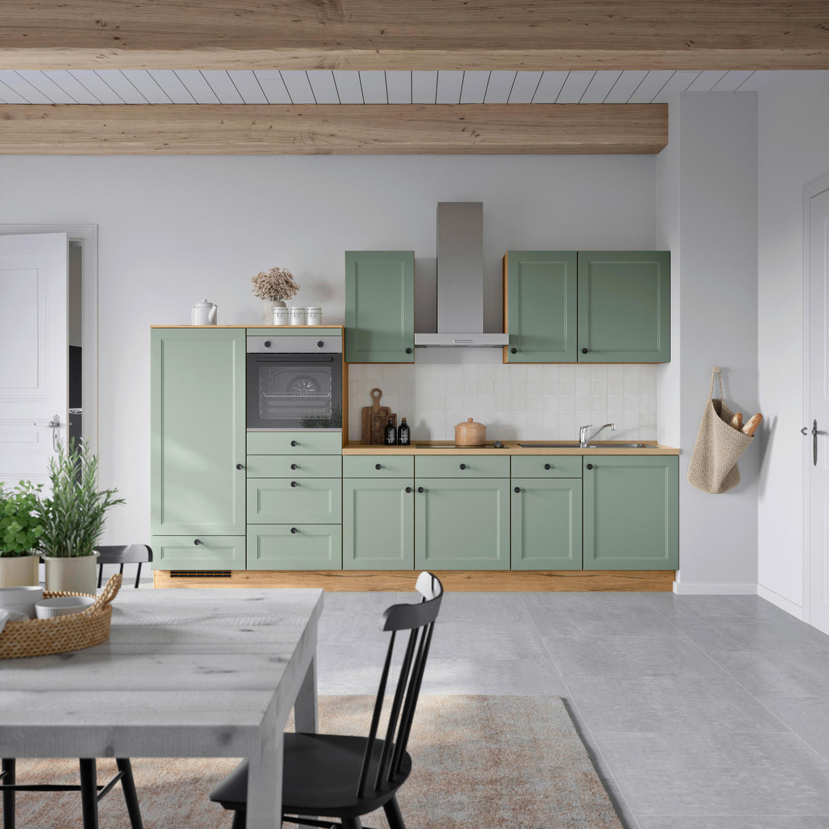 Nobilia KÜCHENBLOCK 330 cm in Eichefarben, Schilfgrün