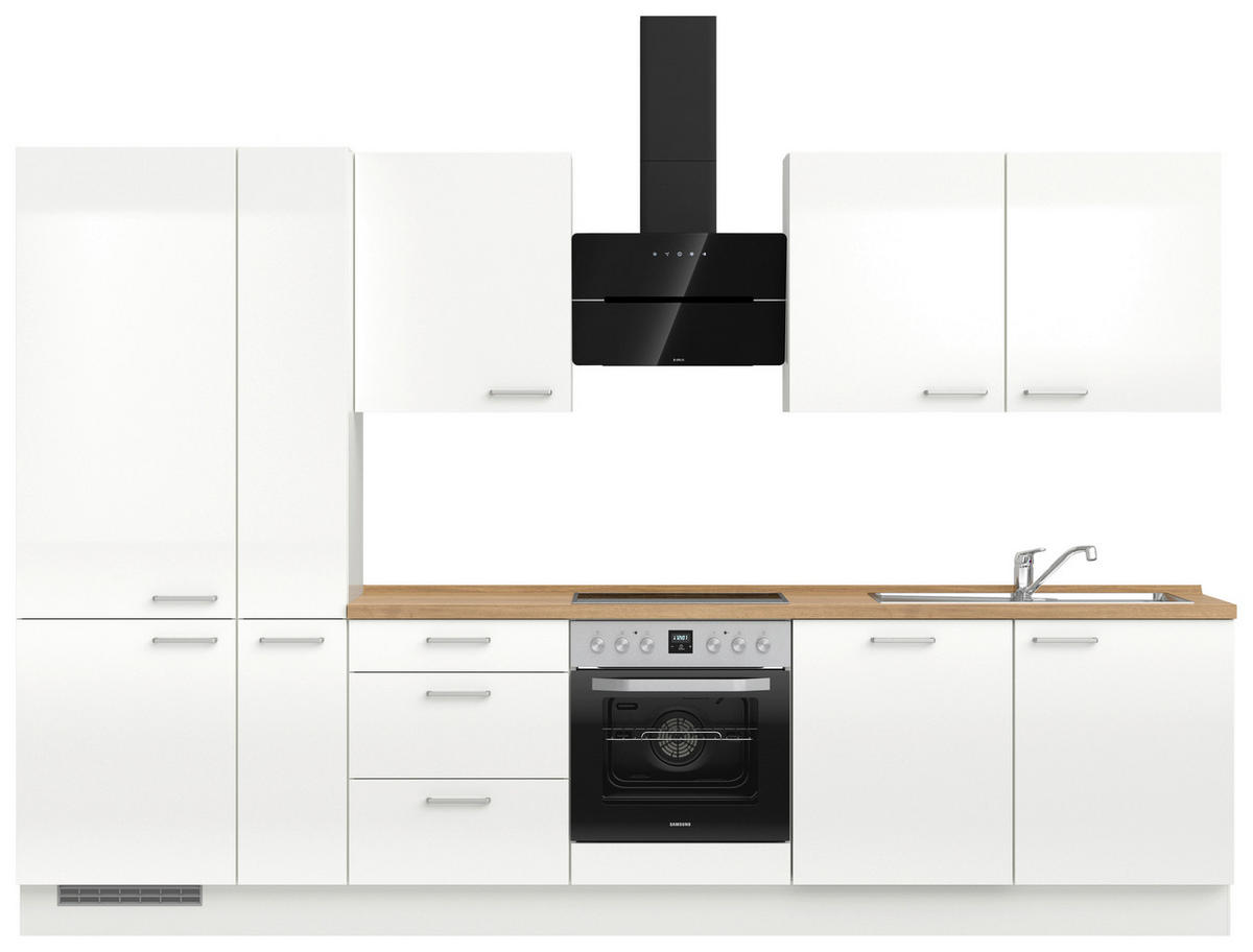 Nobilia KÜCHENBLOCK 330 cm in Eichefarben, Weiß Hochglanz