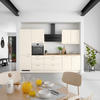 - Zubehör inklusive: E-Geräte, Spüle, Armatur, Soft-Close-System, Türdämpfung, Kohlefilter, Wandabschlussleiste