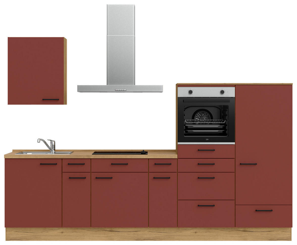 Nobilia KÜCHENLEERBLOCK 300 cm in Rot, Eichefarben