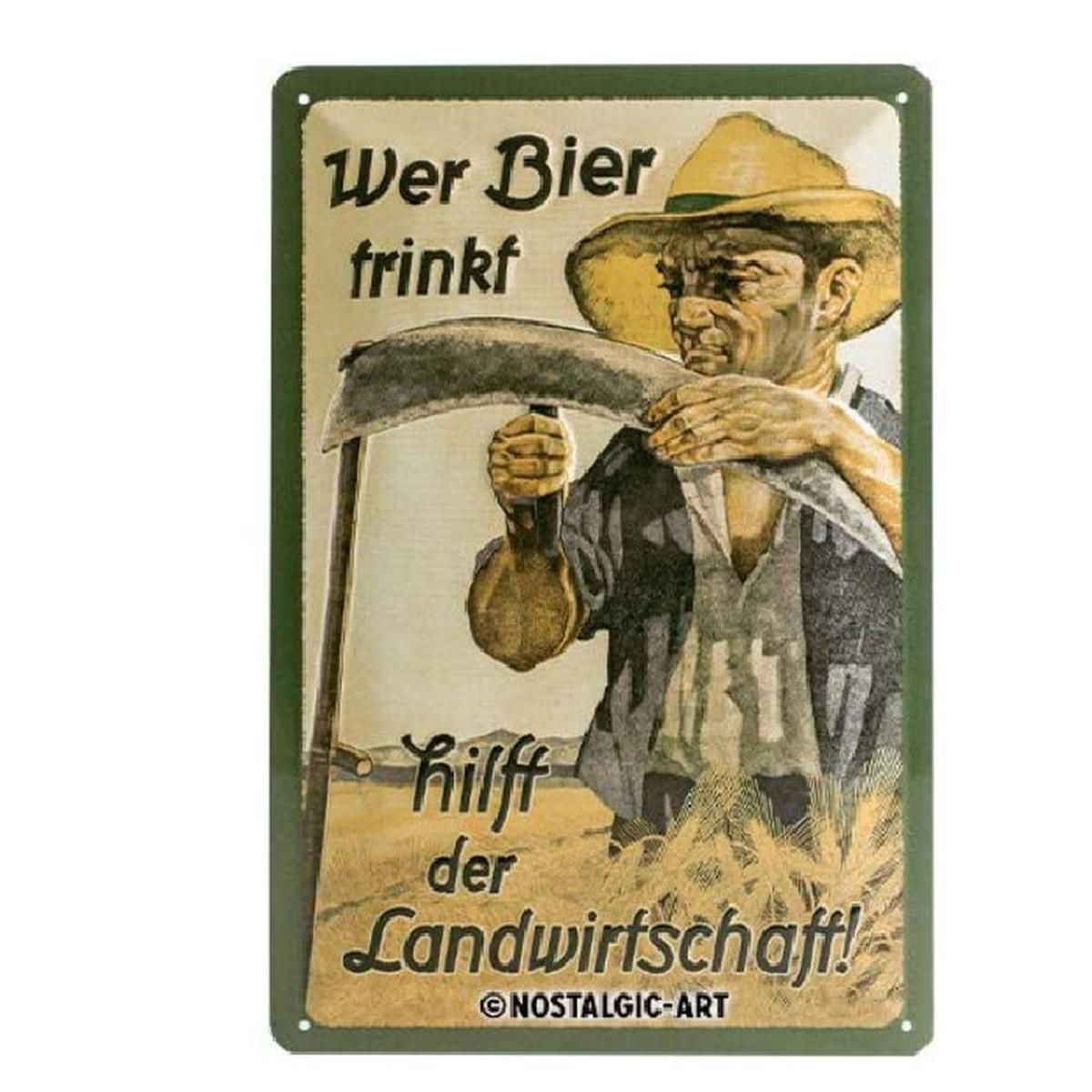 Nostalgic-Art BLECHSCHILD 20/30 cm Open Bar Wer Bier trinkt hilft der Landwirtschaft
