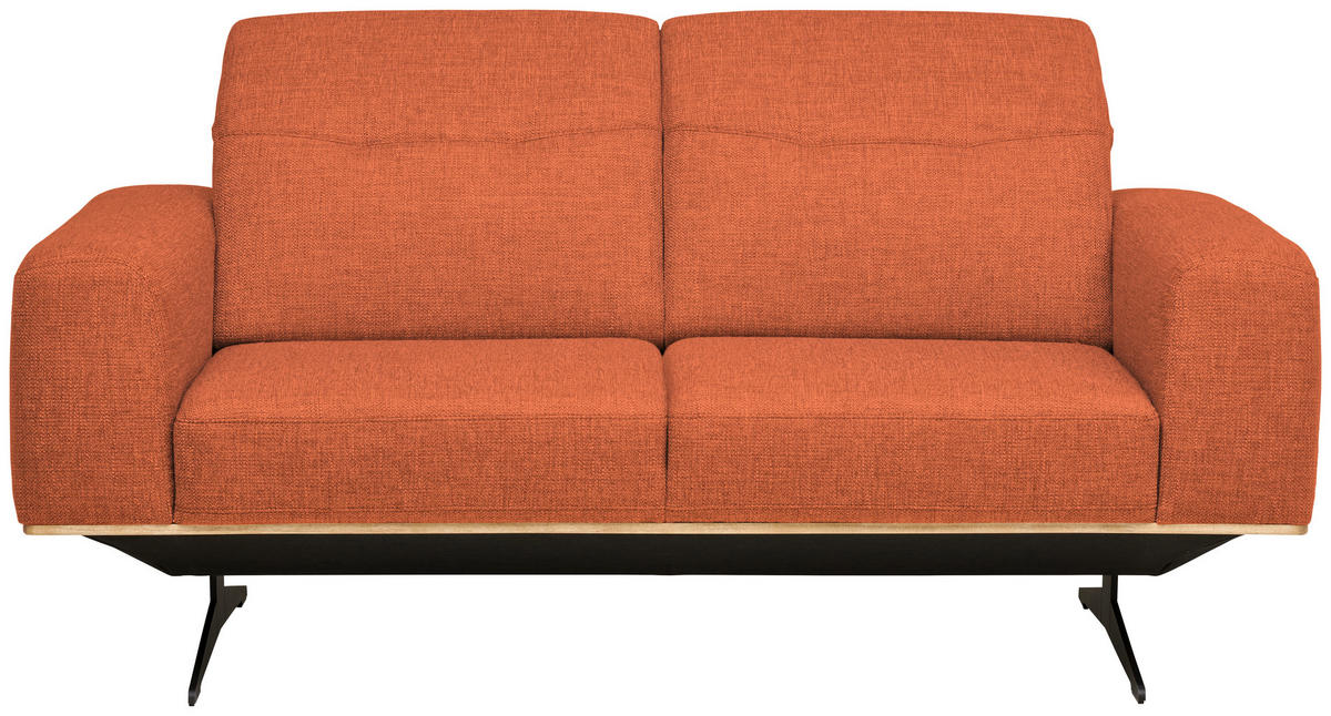 Absolut sehenswert Ein schickes Ambiente, das unterschiedliche Einrichtungstrends geschmackvoll abrundet, kreiert das Polstermöbel mit seiner prägnanten Farbgebung in Orange. Einen festen Stand gewährleisten die hohen Kufen-Füße aus mattem Stahl in Schwarz, die zugleich das Design vervollständigen.